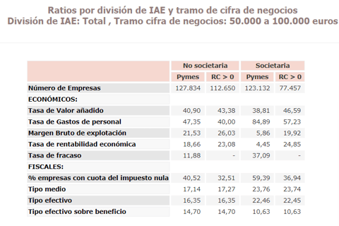 Sin embargo, el error se fragua cuando Yolanda afirma que este tipo efectivo sobre beneficios es soportado por un pequeño autónomo, por ejemplo una pequeña peluquería. El dato analizado arriba es sobre el total de todas las PYMES. Para analizar el dato conciso del ejemplo de Yolanda Díaz debemos discernir por volumen de ingresos.